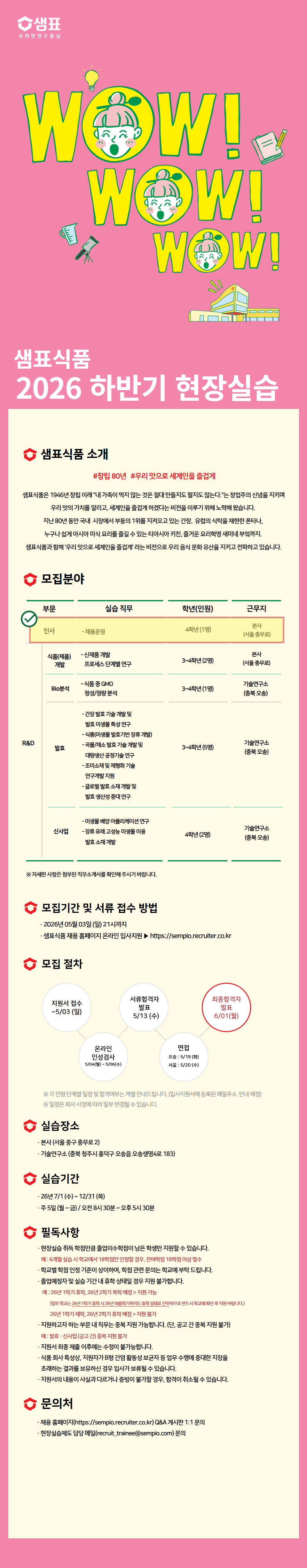 천안 [진로취업] 2026학년도 하계방학 및 2학기 현장실습학기제 참여자 모집 (샘표식품)